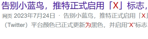 2023年7月,馬斯克正式廢棄推特小藍鳥標誌,啓用“X”標誌。