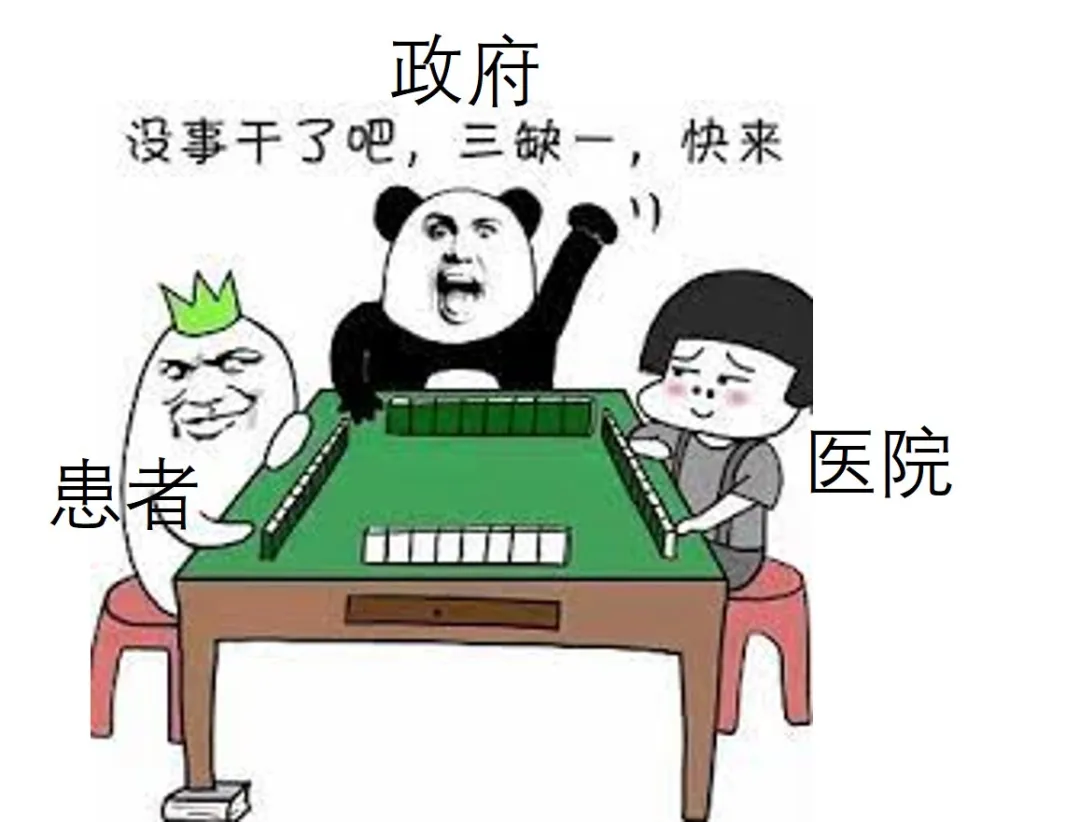 國家、醫院、醫生、患者,坐在一個麻將桌上,現在國家要讓患者和牌,醫院又聽國家的,能被犧牲的只有醫生了,尤其是底層醫生。所以才會有規培生過勞死、規培生自殺的新聞出現。