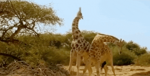 C.《動物世界》資深觀眾,模仿兩頭長頸鹿打架。