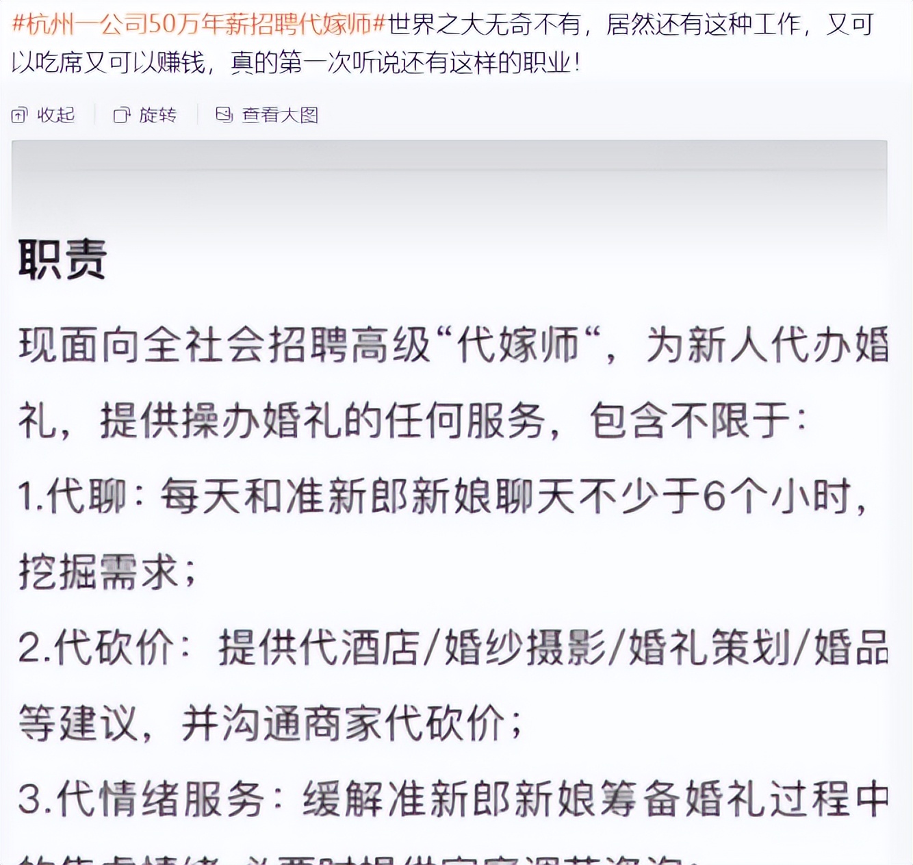 杭州新型崗位“代嫁師”,年薪50萬,工作內容不簡單_風聞