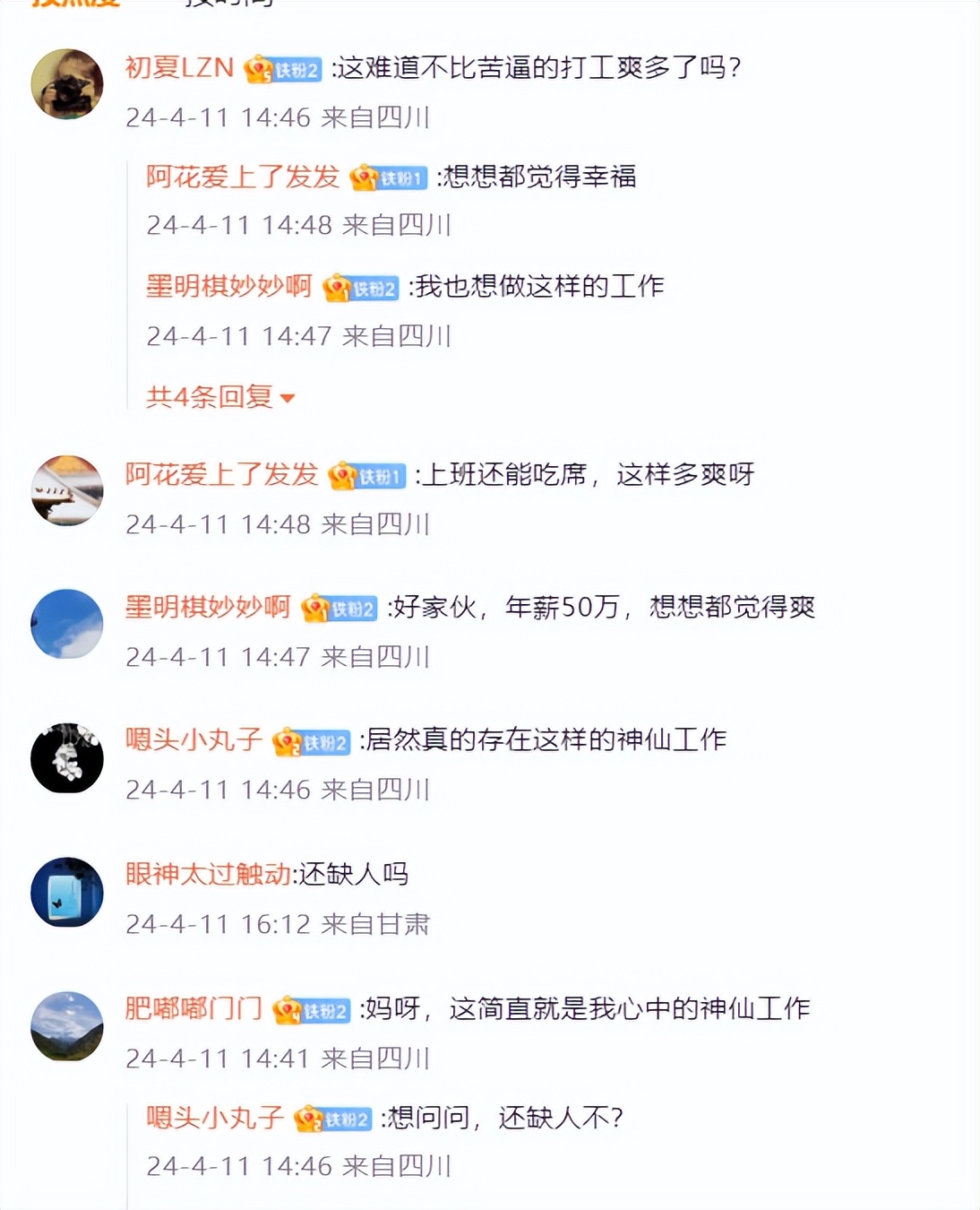 該職位發佈後,引發網友“實名羨慕”,紛紛表示希望能去應聘。有網友感嘆,“帶薪吃席”,居然真有這種職業,這不是夢裏面才有的嗎?還有網友表示,這樣的神仙工作,我也能幹。