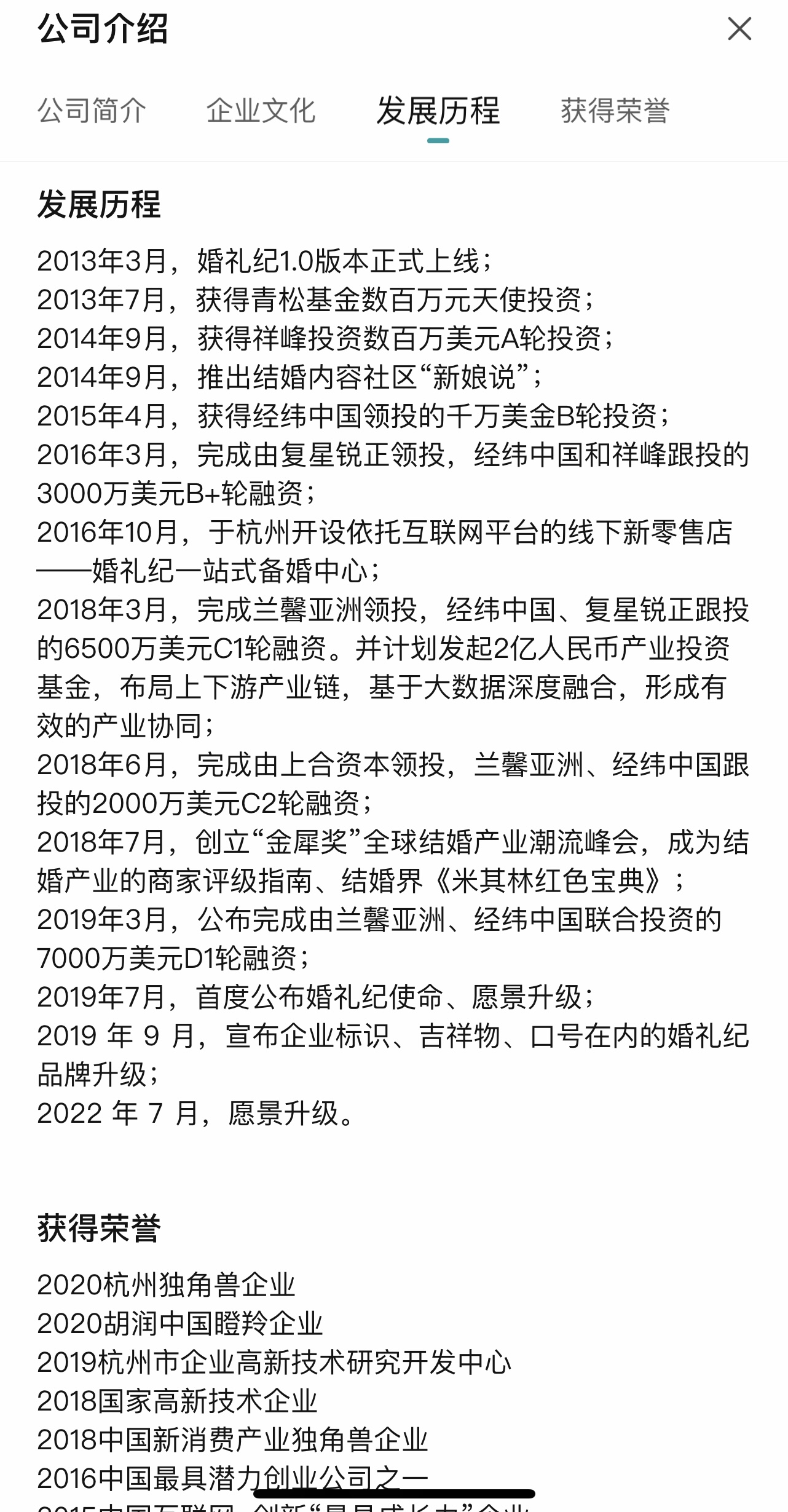 大致一看,這是一家在婚慶服務領域的獨角獸企業,服務領域也比較細化專業。