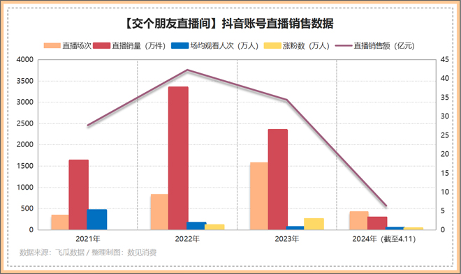 【交個朋友直播間】從2021年到2022年直播銷量暴漲52.8%,其頭部主播羅永浩在2022年6月宣佈退出直播間後,2023年該直播間的直播場次飆升141.3%,但銷售額及銷量都產生了一定程度下滑。讓人不免產生質疑,【交個朋友直播間】去頭部化是否算得上成功?