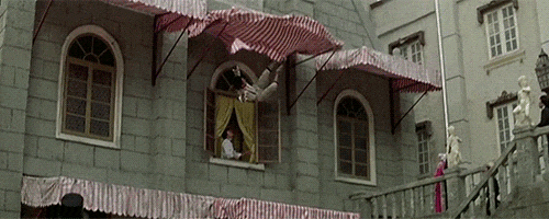 《警察故事》裏有一個經典鏡頭:成龍在商場縱身一躍,抓住纏滿彩燈、鋼絲和爆破裝置的鐵桿滑下,霸氣墜落到玻璃天花板上。