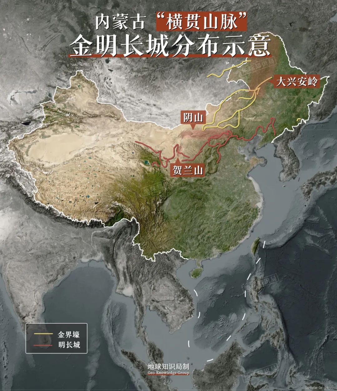 甚至連長城都是“軸對稱”的,東部對應金界壕(金長城),中西部對應明長城,標準的“農牧交錯帶”。