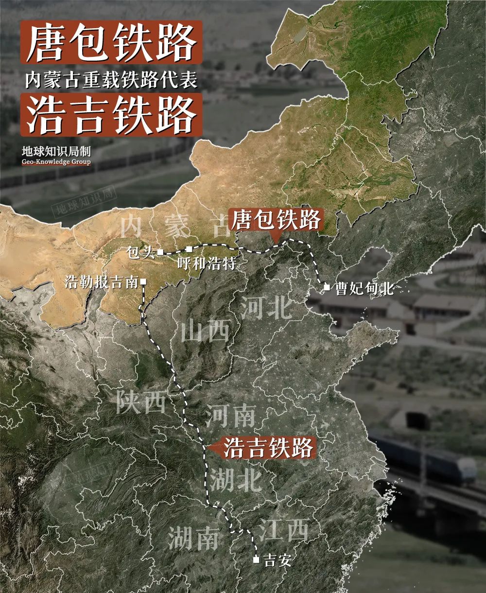 內蒙古的重載鐵路實在是太多了,大準、通霍等等不勝枚舉,其中最著名的是唐包和浩吉兩條鐵路,一條從包頭直達唐山港,一條從東勝煤田直達南方,動不動就是上百節車廂的架勢。