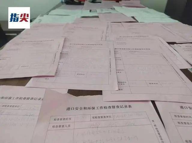 在甘友祥提供的部分執法檢查文書中,指尖客户端記者看到《港口安全和環保工作檢查督查記錄表》數量最多,超過了40份。甘友祥稱,那些記錄表都是執法三大隊開具的,因為有時候對方來檢查時並不出具執法文書,所以他保守估計執法三大隊到碼頭執法檢查至少超過了百次。指尖客户端記者發現,僅2023年3月,便有4張記錄表。而在港口資產管理部的管理記錄中,“執法三大隊“的檢查記錄幾乎每週也都會出現。