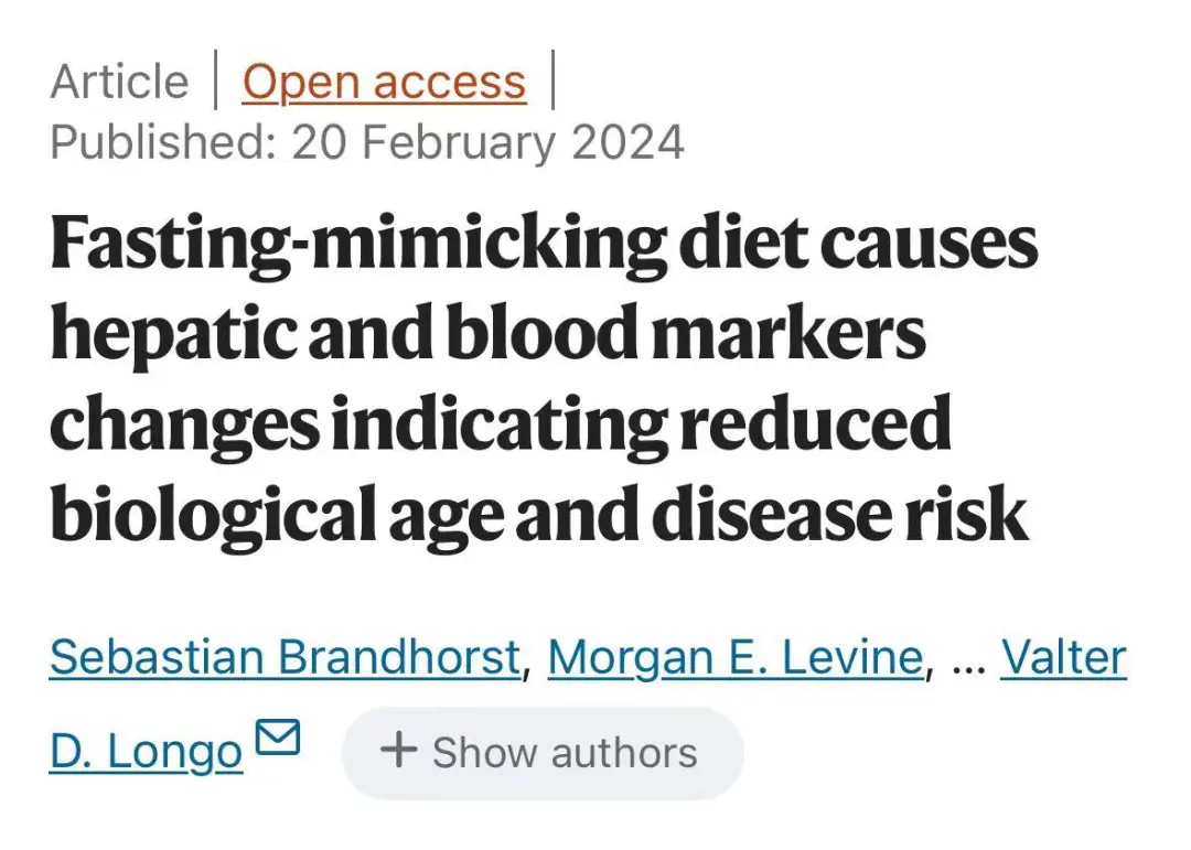 前兩天在領研看到一篇發表在《Nature》子刊上面的文章,研究稱「模擬禁食」(FMD)可以降低人們的生物學年齡,令人驚訝的是,完成了3個FMD循環之後,參與羣體的生物學年齡平均降低了1.5歲,中位數年齡降低了2.5歲……總之是一個有趣的研究,倘若感興趣可以去閲讀一下這篇文章。