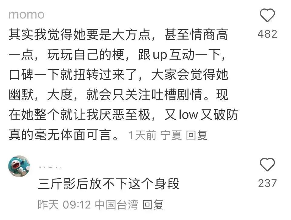 印象裏,她風評和路人緣還挺好的啊