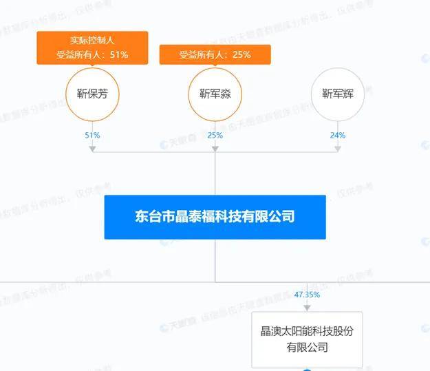 2021年6月,被解除留置後第二個月,靳保芳火速將其持有的晶澳科技控股股東——晶泰福的25%股權,轉讓給二女兒靳軍淼。