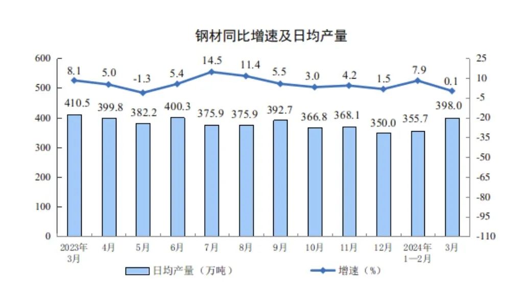△近一年鋼材同比增速及日均產量(圖源:國家統計局官網)