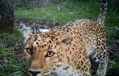 “我們去年到現在已經拍到八隻了,大年三十還有一隻母豹帶着三隻小崽來田邊給咱拜年哩。”