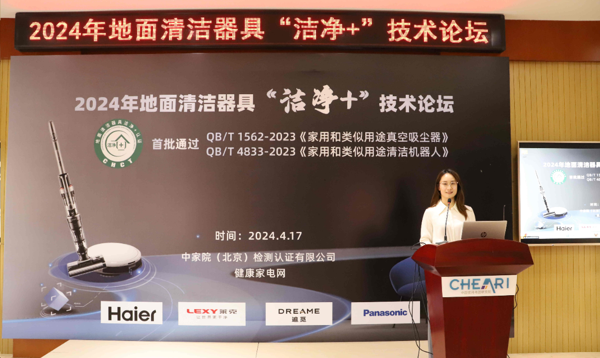 為助力消費者篩選具有高性能的地面清潔器具產品,引導理性科學消費,4月17日,中家院(北京)檢測認證公司主辦的“2024年地面清潔器具“潔淨+”技術論壇”在北京舉行,論壇採用“線上和線下”同步方式進行,海爾、萊克、追覓、松下、石頭、戴森、九陽、添可、蘇泊爾、格力、順造等企業代表參加了本次會議。