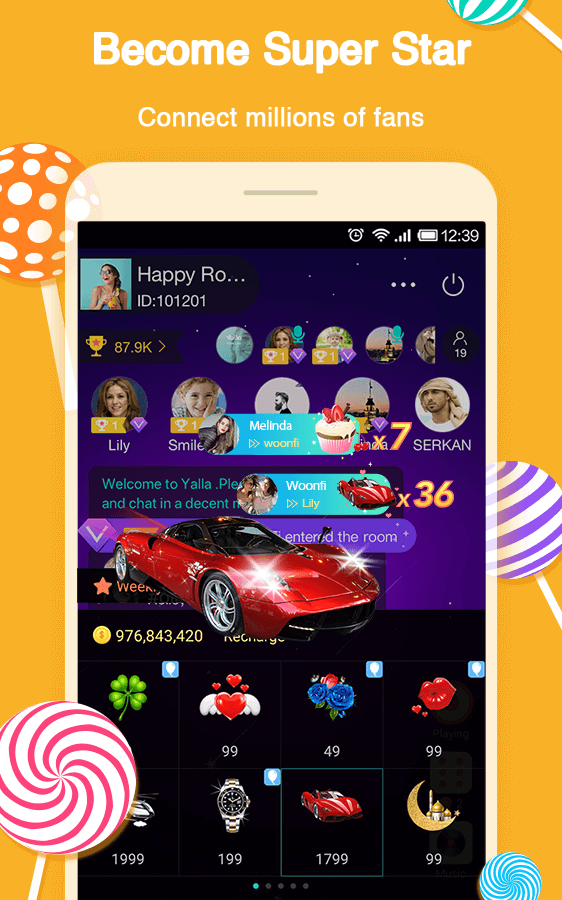 比如在 Yalla 裏,你要給心儀的妹子示好,就可以刷各種精美禮物,什麼瑪莎拉蒂、烈焰紅唇、滿鑽名錶之類的。