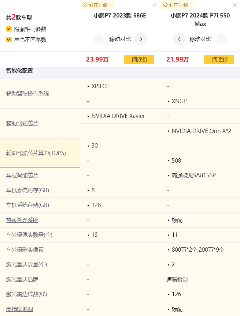 智駕用的是上一代的 XPILOT 3.0 , Xavier 和兩顆 Orin X 確實沒法比,還沒有激光雷達,只能實現高速 NGP 。不過真正的城區智駕各家大部分還是個餅,用不用得上就看各位了。