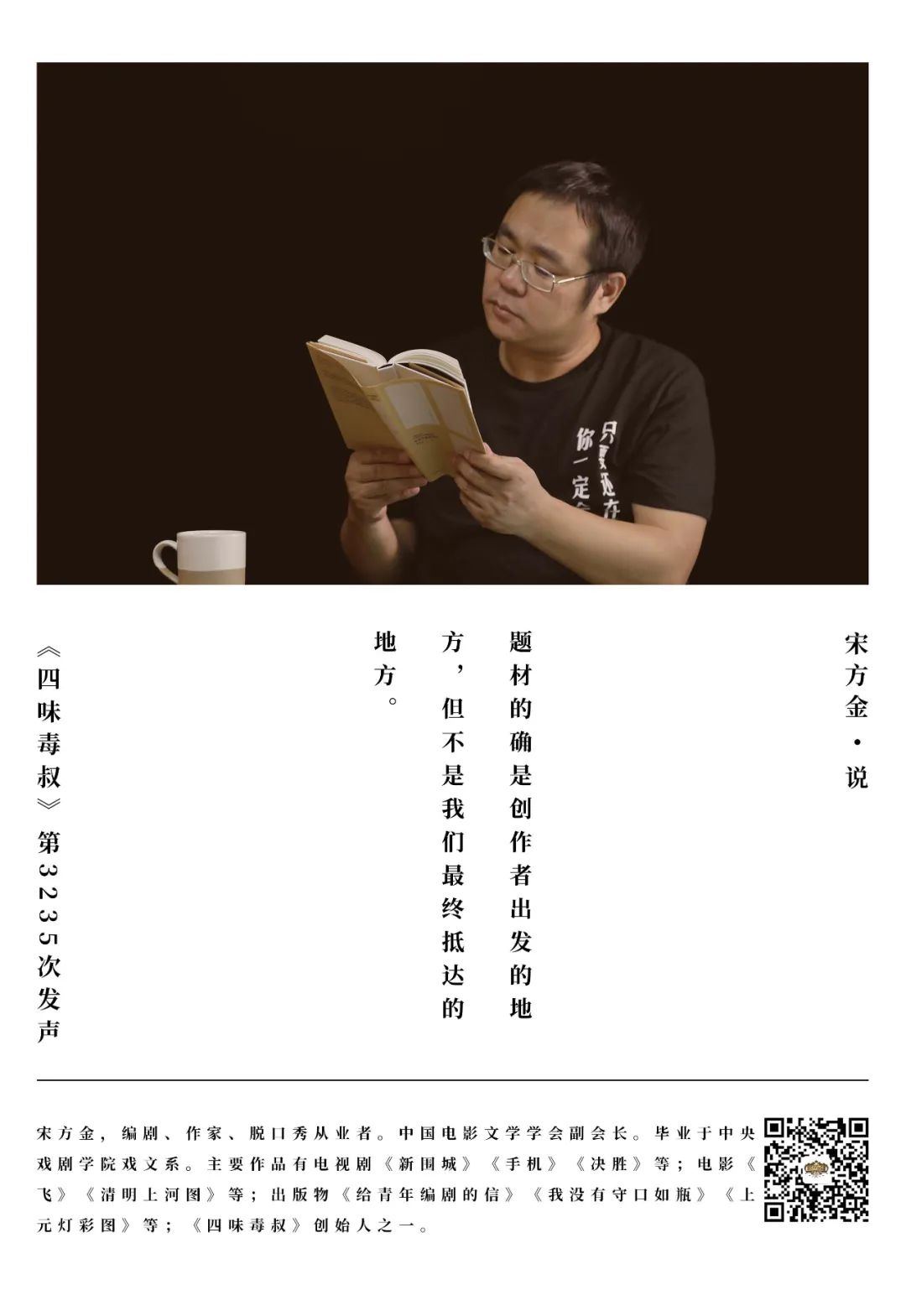 宋方金:他沒有必要了解這些,所有的觀眾在觀看一部作品的時候他尋找的都是自己,他要在陌生人的身上尋找自己熟悉的情感,自己熟悉的某種恐懼、某種憐憫、某種悲憫。但是他不在乎你拍的那個是個什麼生活,所以好多創作者在創作的時候會覺得因為這個題材沒有人表現過所以值得寫,但題材都是你出發的地方,不是你最終抵達的地方。