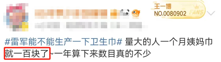 哪怕“雷軍生產衞生巾”的呼聲再高,也難免招來部分網友的拷問:
