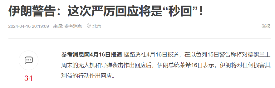 因為伊朗已經給它嚴重警告了:如果以色列膽敢轟炸伊朗,那麼以色列面臨的回應不是以天或小時來衡量,而是以秒來衡量,而且伊朗的攻擊是上次的十倍!