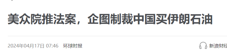 據彭博社16日報道,美國眾議院15日以“壓倒性多數”通過了一項旨在“制裁中國購買伊朗石油”的法案,該法案以 383 票對 11 票在眾議院獲得通過,超過了總統否決所需的票數。報道稱,這是美國議員針對伊朗襲擊以色列一系列涉伊朗法案的一部分。