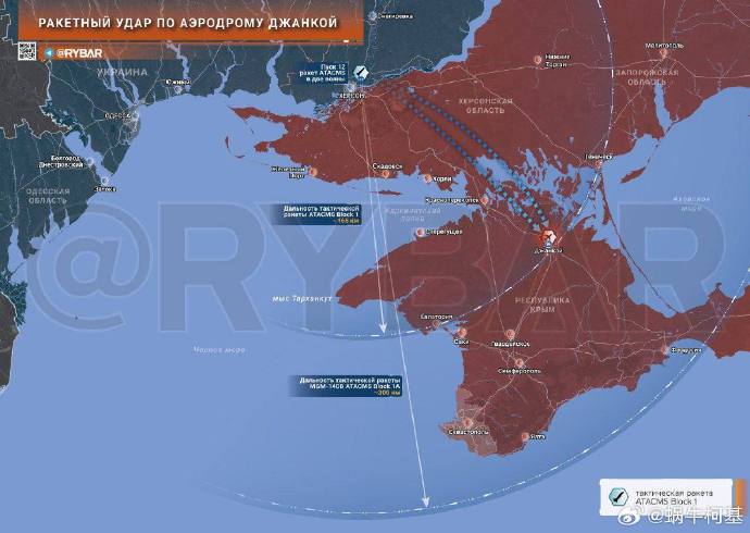 烏克蘭使用了大約12 枚ATACMS 作戰戰術導彈襲擊丹考伊機場,很可能是從赫爾松地區發射的。