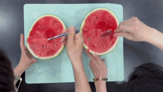 鑑於我一次性吃不完一個西瓜,於是召喚了一個熱衷吃瓜的志願者,和我一起邊吃邊計數!吃飽了就由下一名志願者接替。實驗採用統一標準的勺子,以減少誤差。