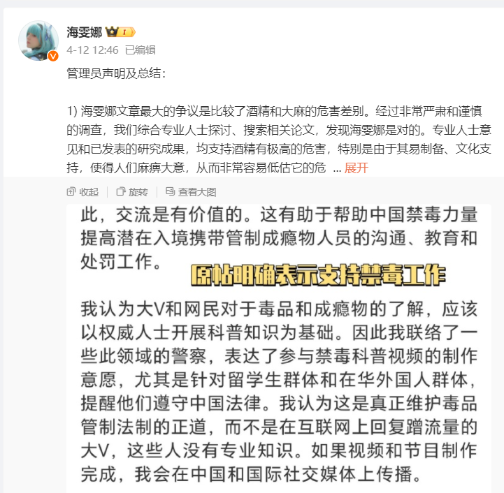 但是呢,很多大V認為這是海雯娜試圖推進大麻在中國合法化,是一種“文化演變”,其心可誅。