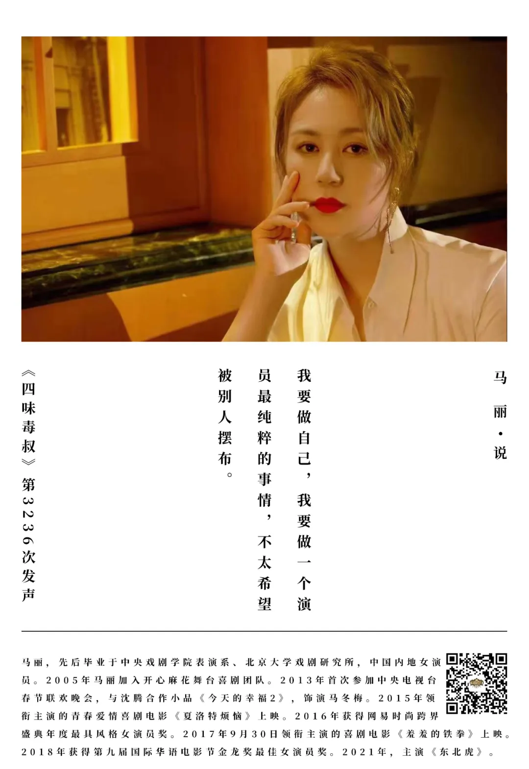 今天,《四味毒叔》邀請到了朱媛媛、馬麗、黃小蕾這三位始終“在成長”的女演員,光陰歲月的流轉為她們帶來了更豐富的閲歷、更超然自信的心態、更強大有魅力的自我。通過鏡頭,她們也想把這份自洽和自信分享給屏幕前的每一位觀眾。