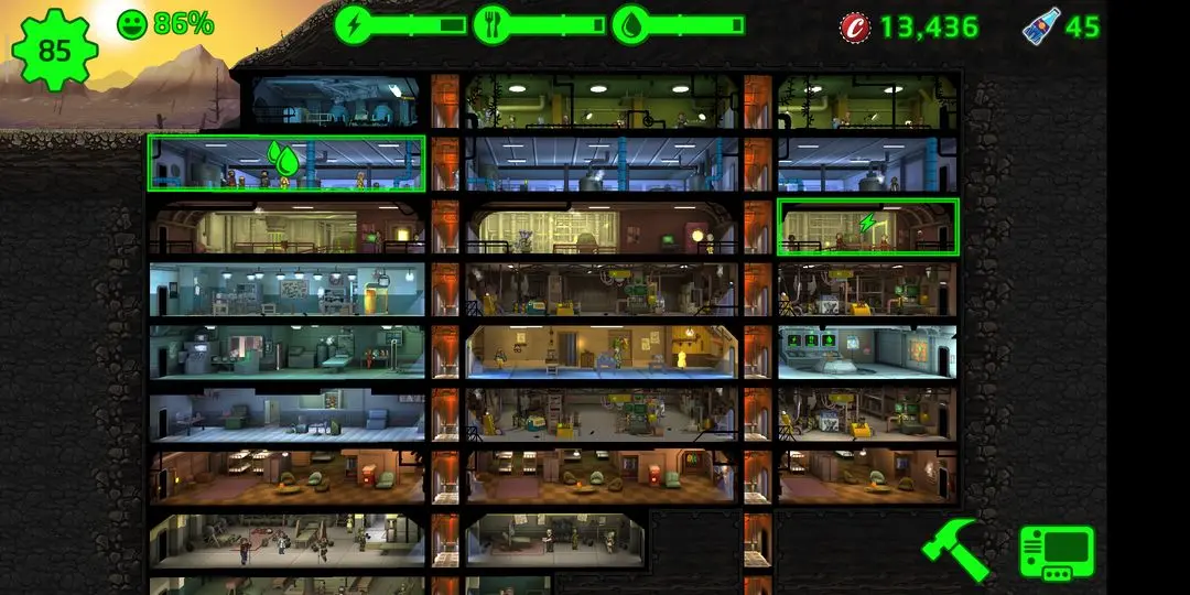 電視劇中也花了不少的篇幅,來描繪女主角所在的33號避難所的日常經營:種植作物、維修設備、抵禦外敵、還有組建家庭為避難所增添人口。這些要素對於以冒險和探索為主導的《輻射》系列正作中還是頗為少見的,哪怕提及也往往一筆帶過。倒是在手遊《輻射 避難所》和《輻射 避難所 Online》中,玩家的確需要扮演避難所監管者,每天起來眼睛一睜滿腦子都是“淨水芯片是不是又壞了”“這麼多口人的吃喝拉撒到底要怎麼整”,看着劇中那些瑣事纏身的監管者也頗有共鳴。