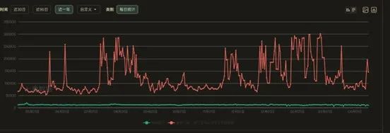 在近 30 日和近 7 日的日均下載量統計中,番茄小説的下載量往往都是 10 倍於微信讀書的存在,微信讀書不温不火的保持着 1 萬多的規模,而番茄小説的上限達到了近 30 萬的等級。