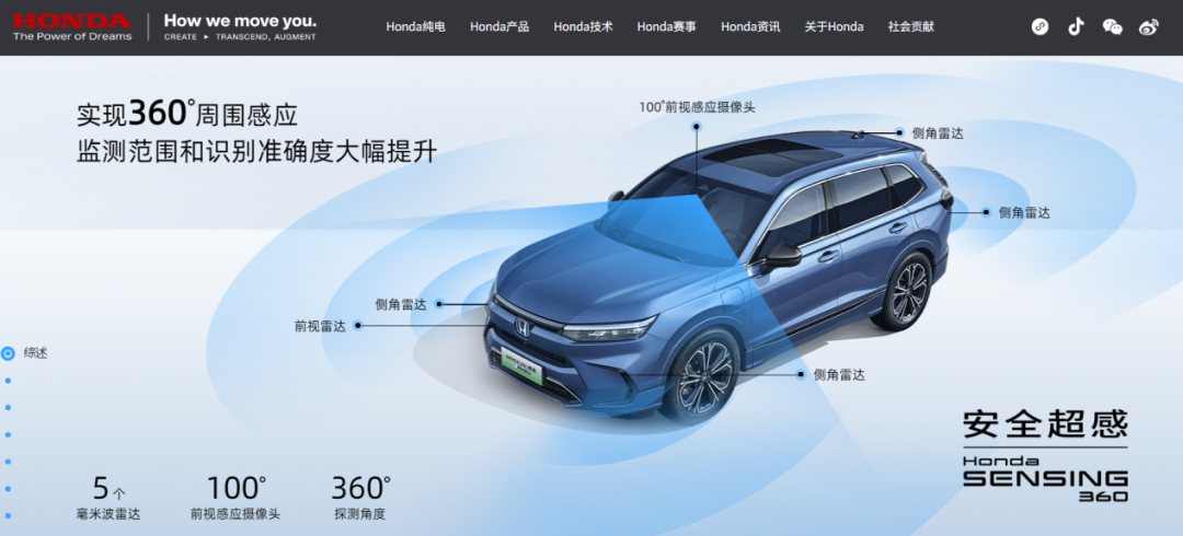 另外,Honda在關於“Honda SENSING 360”的詳情頁中,曾提及Honda SENSING 360包含5個毫米波雷達。換而言之,燁S7和燁P7很可能也會搭載5個毫米波雷達。