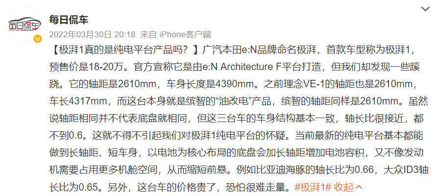 此前,純電子品牌e:N旗下的e:NP1、e:NS1兩款車型均是以全新智能高效純電架構——e:N Architecture打造而來。但也有微博大V就車身、軸長等信息,懷疑本田是在油改電。