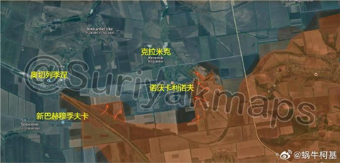 2、阿瓦迪夫卡以北:在奧切列特內第一條街道上戰鬥的同時,俄軍繼續佔領鐵路以北的陣地。佔領諾沃卡利諾夫周圍的高地將有助於奪取該地區,而俄軍已經在東南方向上上展開了行動。