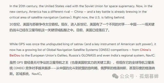 首先,雖然我心裏很清楚,戈爾曼寫這篇東西的初衷不是真的要肯定我們,更多還是借北斗這壺酒來澆美國導航系統的塊壘,也就是衝美國國會要錢去的,但我還是覺得他這篇文章讀來挺暢快的。從某種程度上講,將其視作一篇社會主義爽文也未嘗不可。