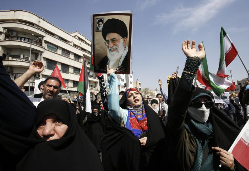 BBC報導伊朗以色列此波互打應已落幕。圖為伊朗民眾上街支持政府反擊以色列。(歐新社)