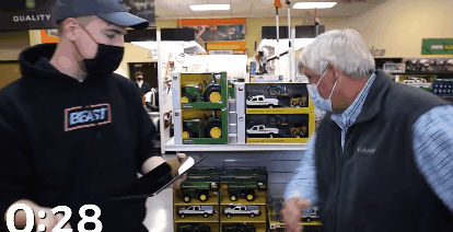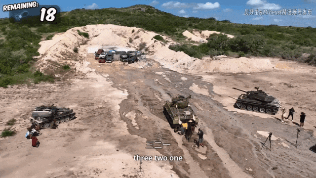 規則很簡單,野獸先生給挑戰者一張銀行卡,限時24小時,他可以在附近小鎮隨便買東西,用來建防禦工事,保護蘭博基尼不被坦克轟成渣渣。只要轟炸結束,蘭博基尼還能開,挑戰者就能開車回家。