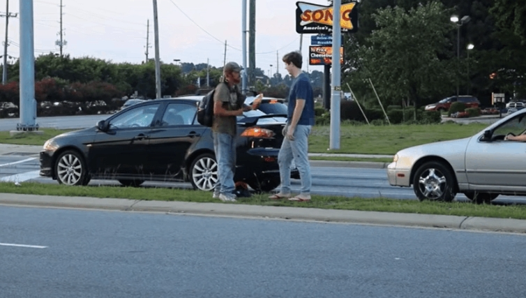他把廣告收入隨機送給了一個流浪漢,不僅給了1萬美元,還帶流浪漢去飽餐了一頓。