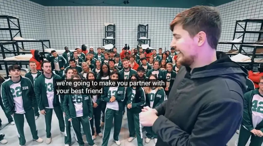 2021年,《魷魚遊戲》爆火全球。他就在自己的影棚裏,像素級復刻了電視劇裏的場景和遊戲,並請來456名玩家,完成5輪遊戲,最終勝者可以獲得45.6萬美元的獎金。即便輸了,也有2000美元的安慰獎。