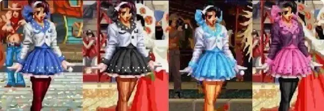 作為一位百變偶像,麻宮雅典娜在拳皇97中,還穿上了當時森高千里的時尚連衣裙,切換不同模式。