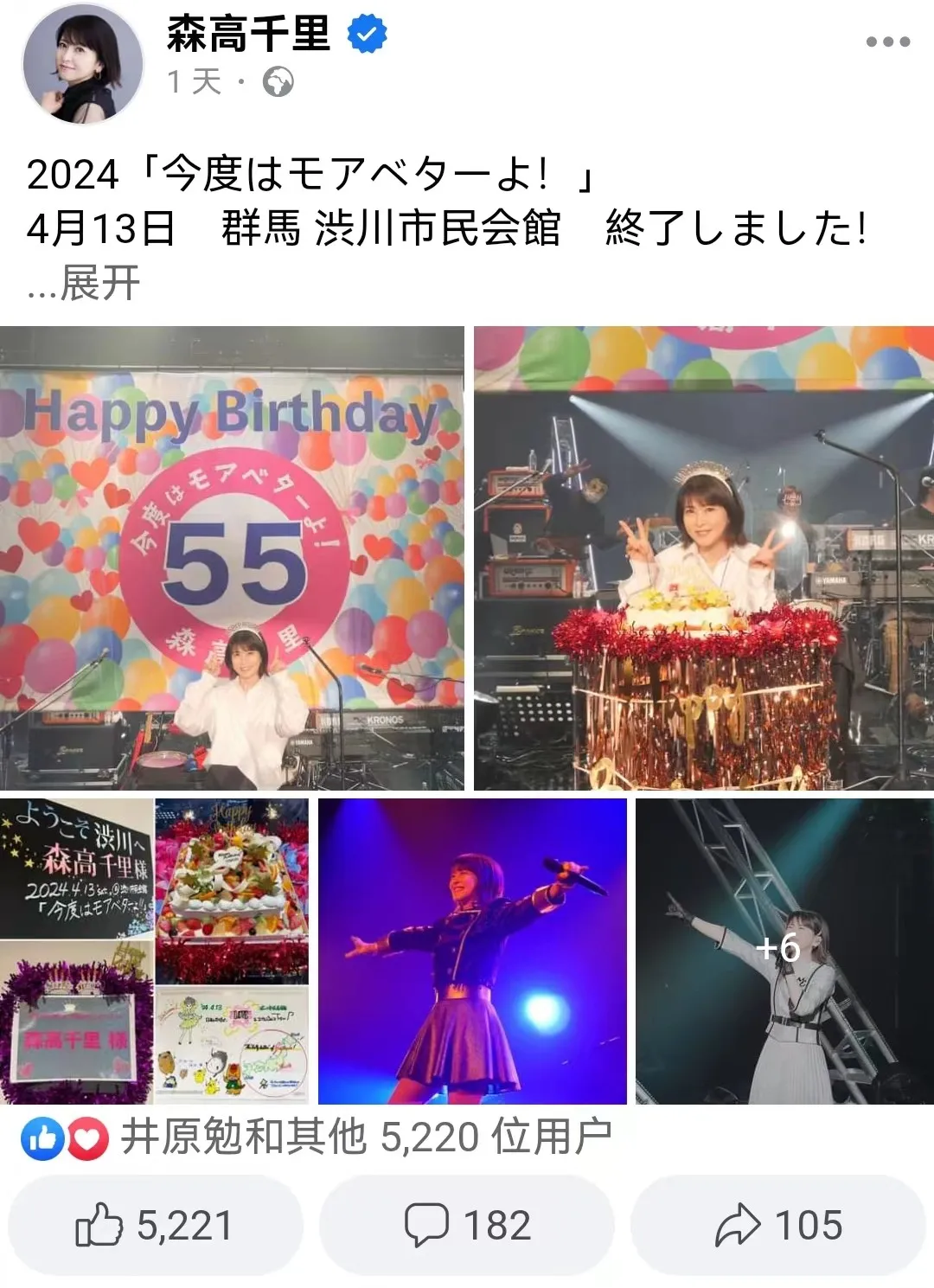 近日,日本歌星森高千里更新Instagram,公開了演唱會的照片,這是她55歲生日以來的第一次發帖。