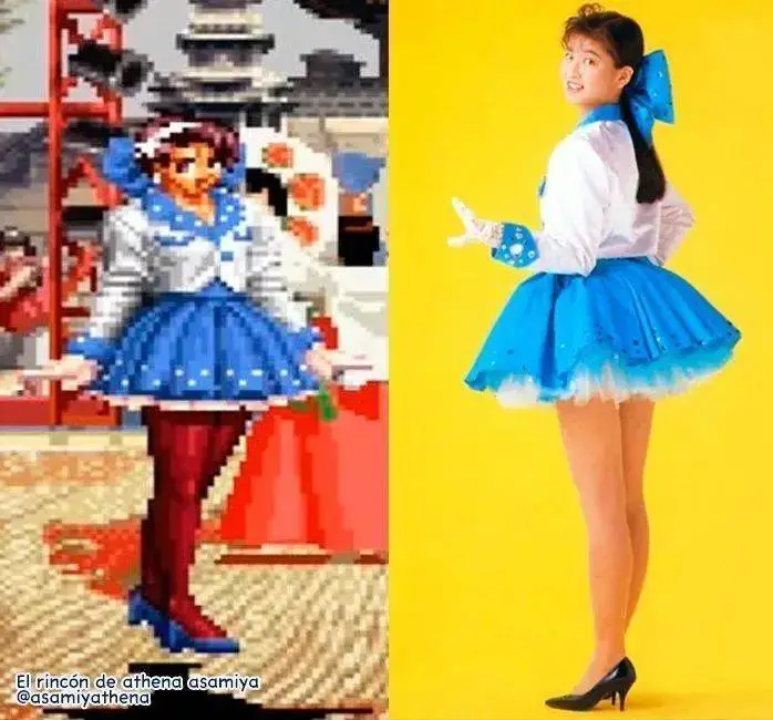 不僅如此,相信很多人的童年記憶中還都有過《拳皇》的記憶。作為日本早期的格鬥遊戲,裏面有一位叫麻宮雅典娜的女格鬥家,據説就是以當時超人氣女星森高千里為原型所設計。