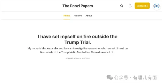 自焚者出事前在社交媒體寫道:我在川普審判室外自焚了。
