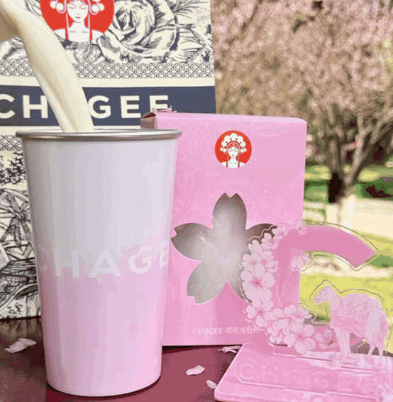 櫻花季時,霸王茶姬在湖北限定上新,採用的是櫻花變色冷飲杯;