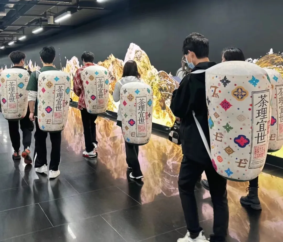 茶理宜世為慶祝7週年在廣州和上海推出“碰杯”活動。讓一羣“神秘人”揹着巨大的奶茶杯毛絨玩具出街,消費者根據其提示的碰杯動作進行互動,即可獲得招牌飲品買一送一券。