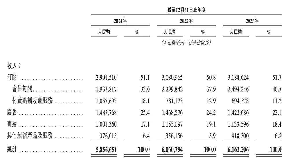 除了訂閲之外,喜馬拉雅的第二大營收就是靠廣告了。招股書顯示,2021年-2023年,喜馬拉雅廣告收入分別為14.88億元、14.69億元和14.23億元,佔總收入的比例分別為25.4%、24.2%及23.1%。廣告收入以及所佔總收入的比重都呈現下降趨勢,以目前國內廣告行業品牌商預算有限的大環境來看,未來廣告收入的繼續增長似乎並不算樂觀。