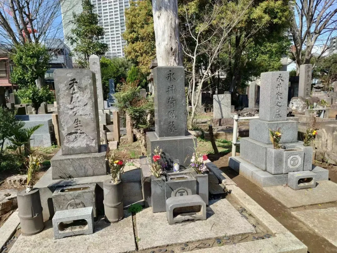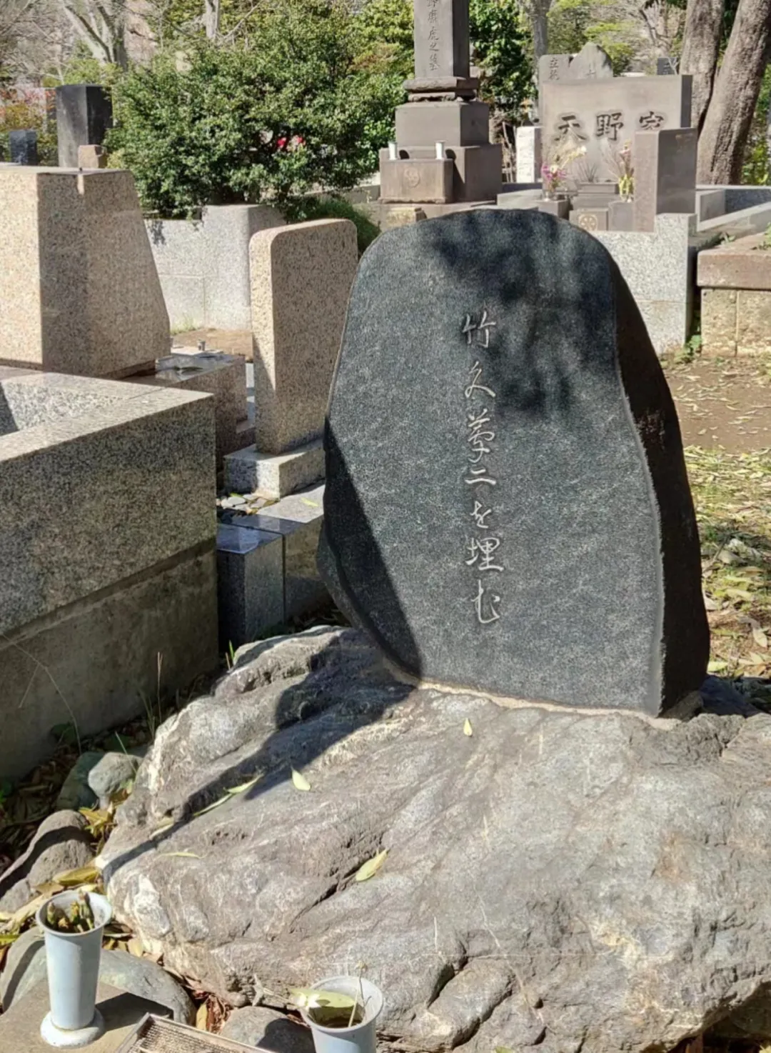 知名詩人、插畫家竹久夢二也住在這裏,他墓碑上的字體,與其他的都不同,就如同他筆下那些大正美人般,浪漫飄逸。
