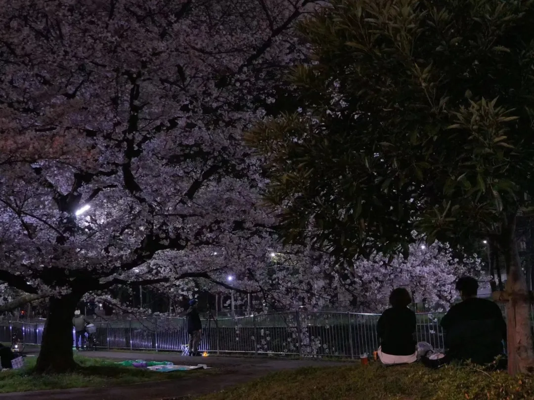 濃厚的雲終於破開,月光照得雲層輪廓分明。走在櫻花樹旁散步道間,暗處稀稀嗦嗦的碎語,最大的噪音也不過是兒童的嘻鬧聲。遲來的賞櫻終於能舉行了。