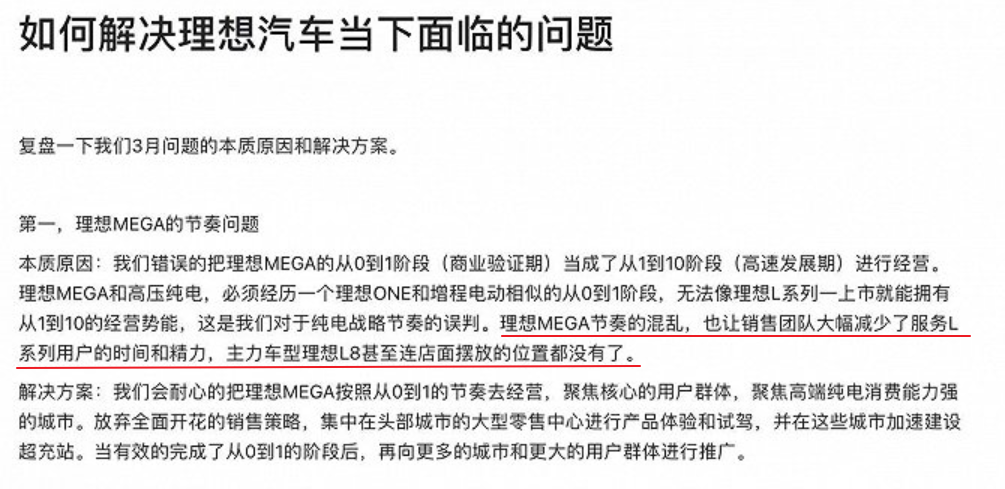 最後的結果是, MEGA 沒有大賣,還影響到了 L 系。李想在後來複盤的內部信裏説, “ 主力車型理想 L8 甚至連店面擺放的位置都沒有了 ” 。