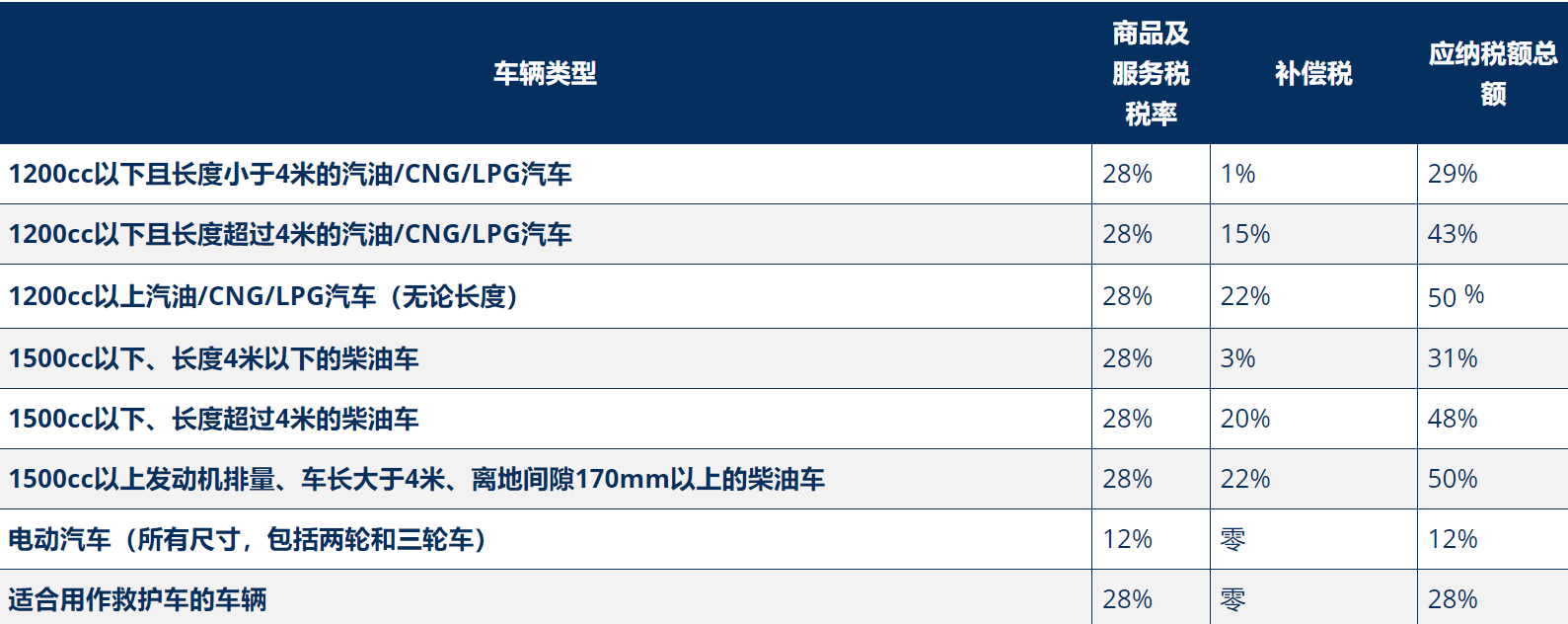 在印度,只要是發動機排量在1.2L以下,那隻徵29%的税(商品服務税+補償税),膽敢超過4米,直接幹到43%,膽敢超過1.2L,直接幹到50%。