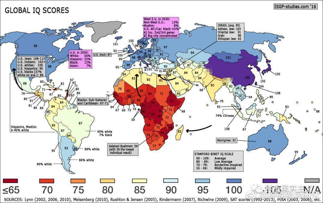 其中生物學基礎是其根本。而據目前的一般國際通用標準,IQ≥90的人口才是具備參與現代複雜製造業的“合格勞動力”。IQ<90只適合一般性體力勞動,嚴重的甚至喪失了工作能力。
