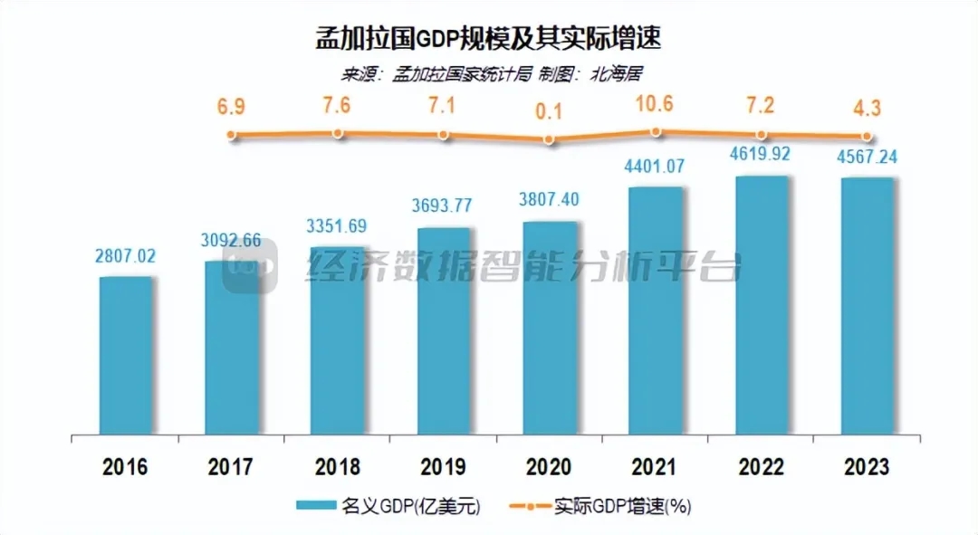 【宏觀】2023年孟加拉國經濟增長4.3% 人均GDP初值2646美元_風聞